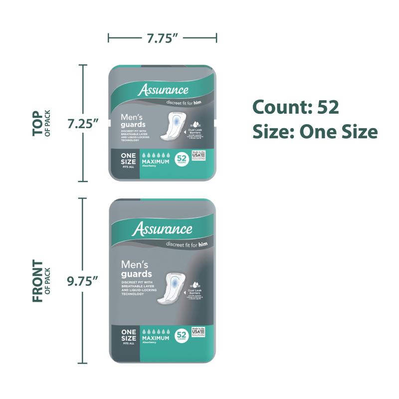 - Assurance Men’s Guards, Maximum Absorbency, 52 Count