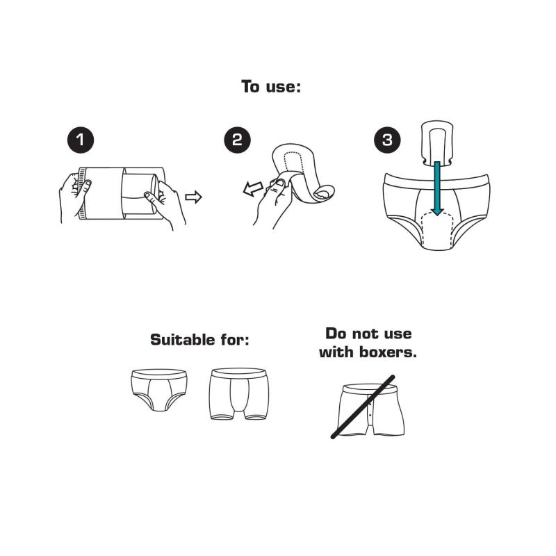 Simply attach the adhesive strip to the inside of your briefs for all day coverage.