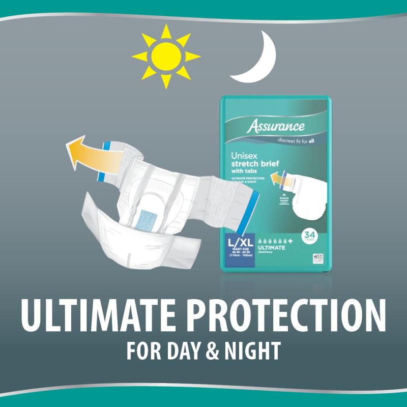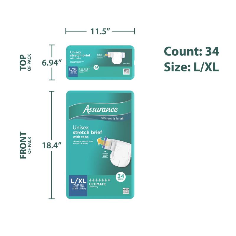 - Assurance Unisex Stretch Briefs with Tabs, L/XL, 34 Count