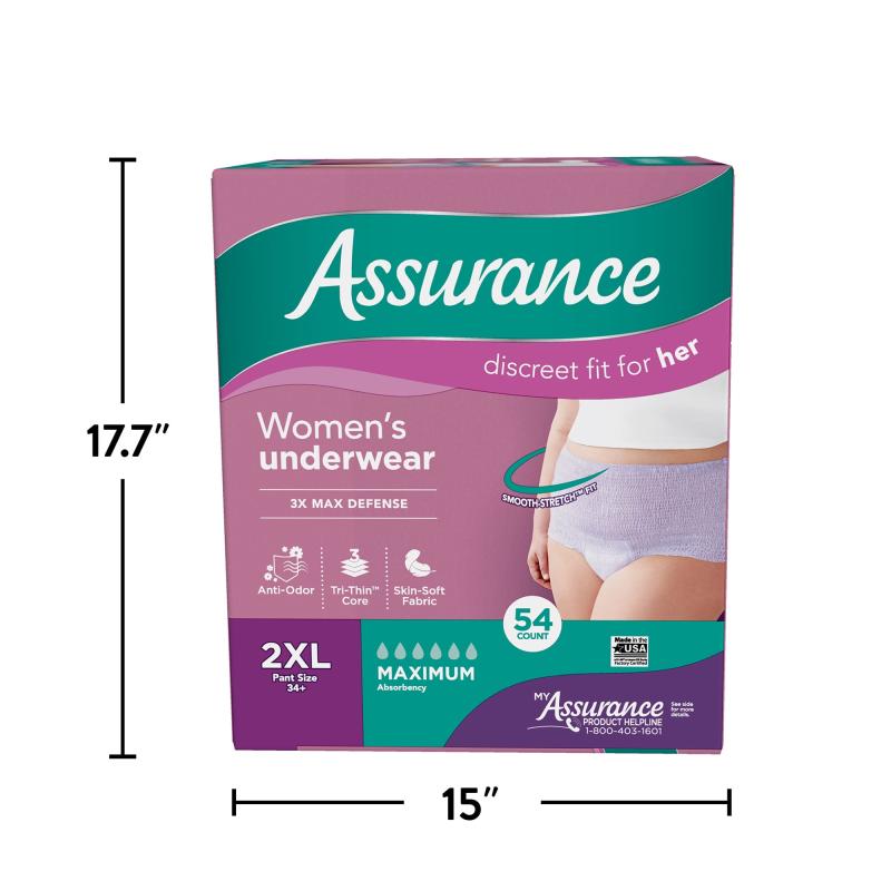 Assurance Women's Incontinence & Postpartum Underwear, XXL , Maximum Absorbency (54 Count)