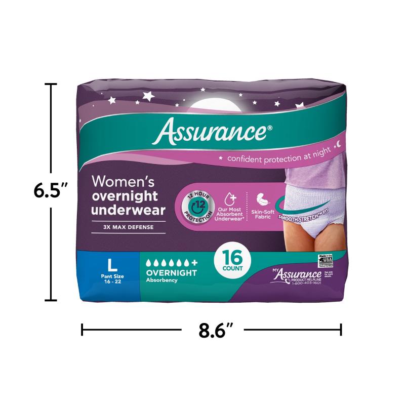 - Assurance Incontinence & Postpartum Overnight Underwear for Women, Maximum Absorbency