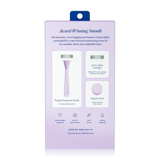 Athena Club 5-Blade Women's Razor Kit - 1 Handle, 2 Blade Refills, Magnetic Hook - Lilac