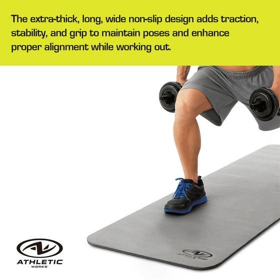 - Athletic Works 12mm Pro Fitness Mat, Size: 72inx23.5inx12mm. Durable NBR material. Slip-resistant design