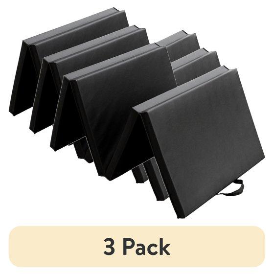 (3 pack) Athletic Works 2ftx6ft Four Folding Exercise Mat, Folding Gymnastics Mat, High-Density EPE Foamed Gym Mat, Black, 1.55 inch Thickness