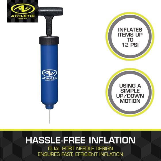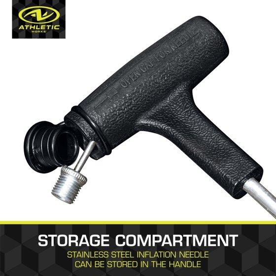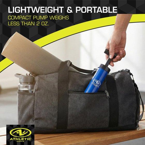 - LIGHTWEIGHT & PORTABLE: 8 in. (20 cm) Athletic Works pump; Weighs 2 oz and is easy to toss in your gym bag or vehicle