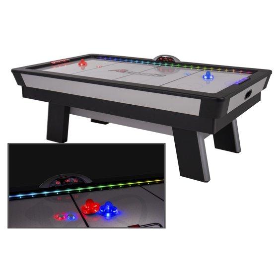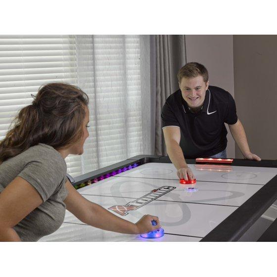 - Comes with accessories including two LED pushers, two round pucks, and one hexagonal spinner LED puck for varied gameplay