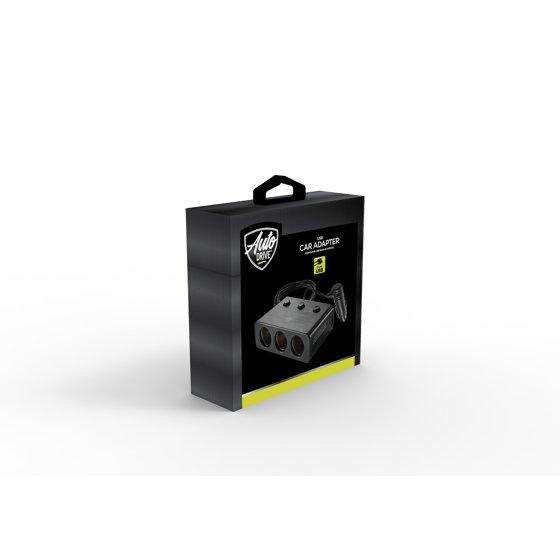 Auto Drive Black 12V/24V Triple Socket Adapter with Dual USB Charging Ports, Compatible with Mobile