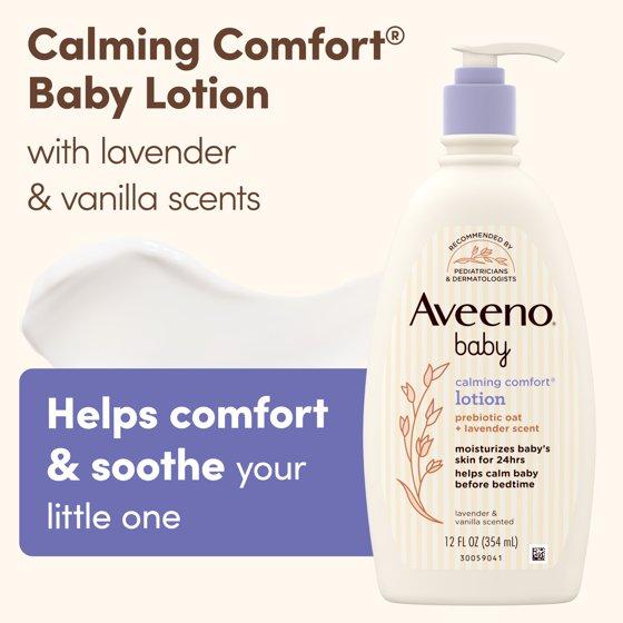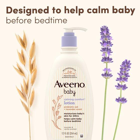 - Aveeno Baby Calming Comfort Moisturizing Bedtime Lotion with relaxing scents of lavender & vanilla