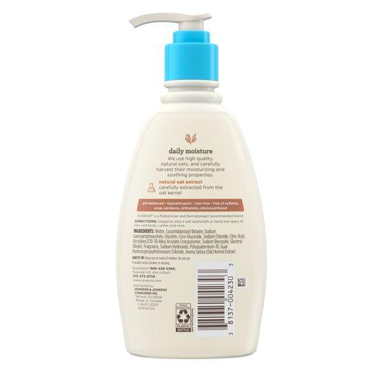 Gently cleanse your baby's skin and hair with Aveeno Baby Daily Moisture 2-in-1 Bath Wash & Shampoo, which features a nourishing formula that gently cleanses without drying. For babies with sensitive skin, this tear-free formula is safe for use on baby's delicate skin and hair. From a pediatrician-recommended brand, the baby body wash and shampoo formula contains natural oat extract, which is known to soothe and gently nourish delicate skin. The rich lathering formula rinses clean, leaving a light, fresh fragrance. This hypoallergenic baby wash and shampoo is free from soap, parabens, sulfates, phenoxyethanol and phthalates and can be used every day to help keep your baby's skin and hair soft and smooth.