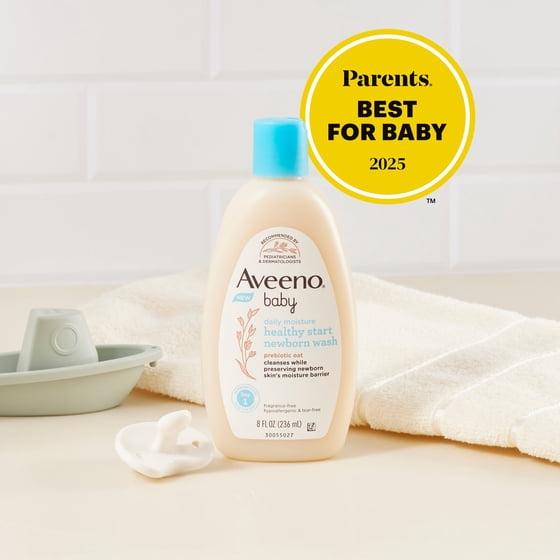 Gently cleanse your newborn baby's skin from day one with Aveeno Baby Daily Moisture Healthy Start Newborn Wash, winner of the 2025 Parents Best for Baby award seal. This mild baby body wash from a dermatologist and pediatrician-recommended skincare brand gently removes dirt and germs from your little one's delicate skin. The soothing newborn wash formula contains prebiotic oat to care for baby's skin and helps to support skin's moisture barrier. Hypoallergenic and pH-balanced, this newborn baby wash is tear-free, and formulated without sulfates, soap, parabens, fragrances, or phenoxyethanol, making it a great choice for baby's delicate skin from day one. To use, dispense cleanser onto a wet washcloth or hands and gently rub to produce a rich, creamy lather. Rinse the gentle body wash thoroughly from your baby's skin. The moisturizing daily infant wash also makes a great baby shower gift for new parents or addition to a baby gift registry.