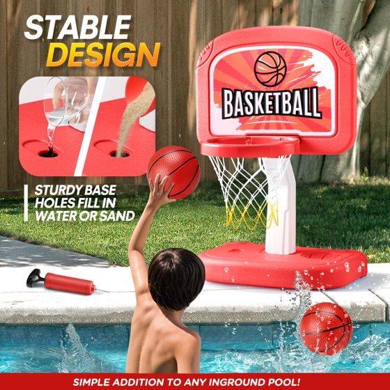 - Decorate Your Pool: A great addition to summer pool games, helpful for parent-child interaction and exercising. The adjustable height design of the basketball hoop guarantees fun for all ages and skill level.