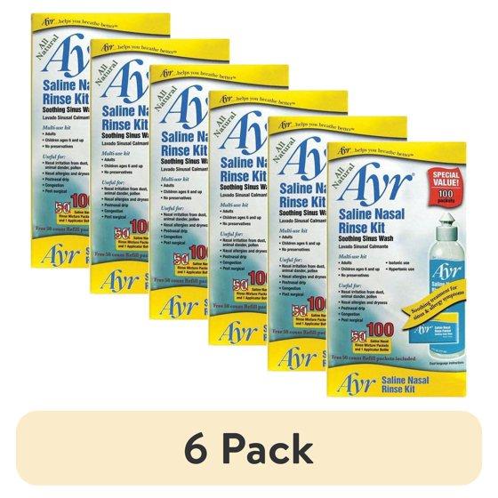 (6 pack) Ayr Saline Nasal Rinse Kit 100 Count