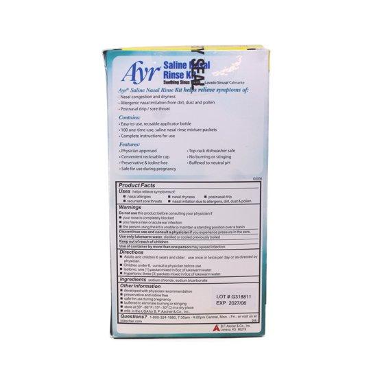 AYR Saline Nasal Rinse Kit, Soothing Sinus Wash, Multi-Use Kit for Adults & Children Ages 6+, 100 ct