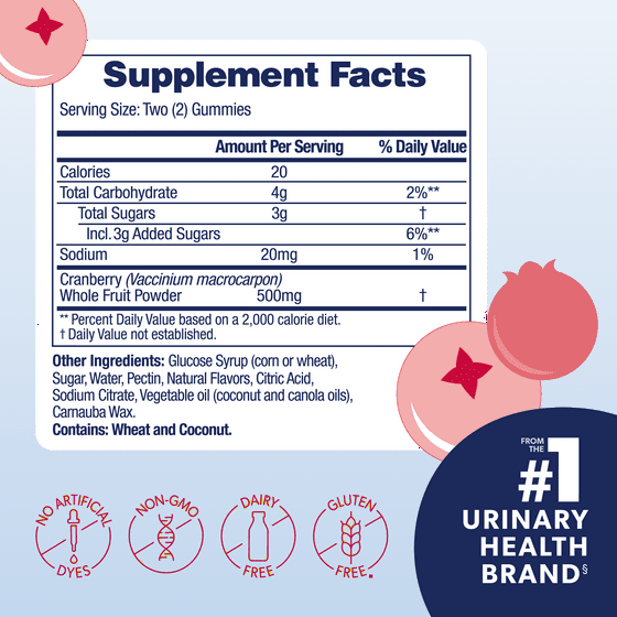 - HOW TO TAKE: Take two cranberry supplement gummies daily