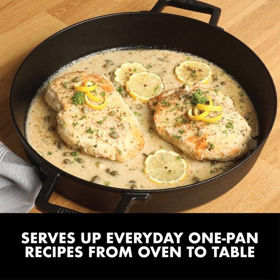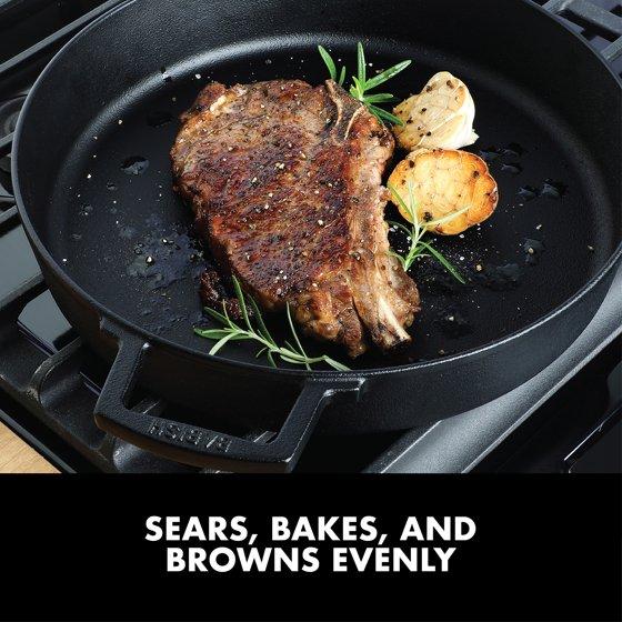 - HEAVY CAST IRON CONSTRUCTION: Sears, sautés, fries, and bakes evenly. Durable cast iron provides superior heat distribution and retention.