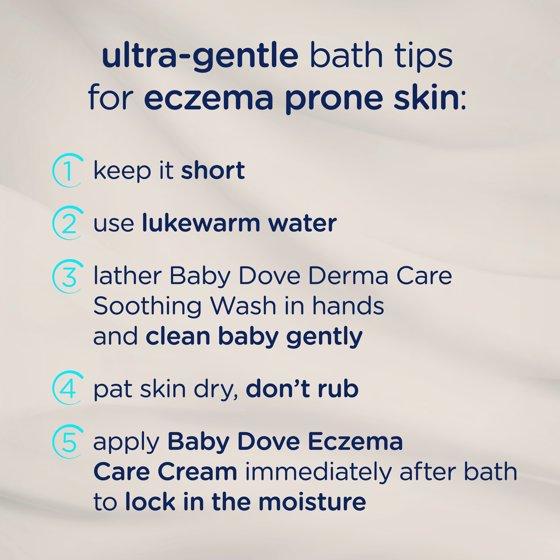 Baby Dove Derma Care Soothing Wash is ideal for daily use. Wet baby's hair and skin with warm water and wash gently with hands or wash cloth. Immediately after bathing, follow with Baby Dove Eczema Care Soothing Cream to soothe dry, itchy skin due to eczema.