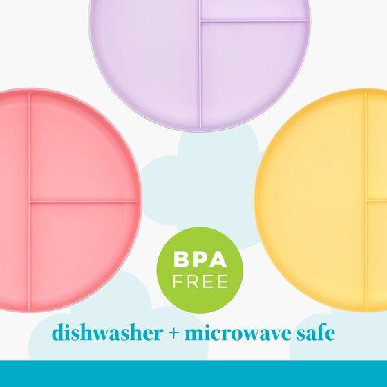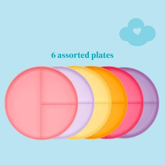Baby Joey Kids Divided Plate Set for Girls, Pink, Purple, & Yellow Assorted Colors, 6 Piece