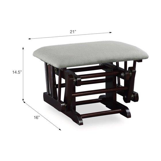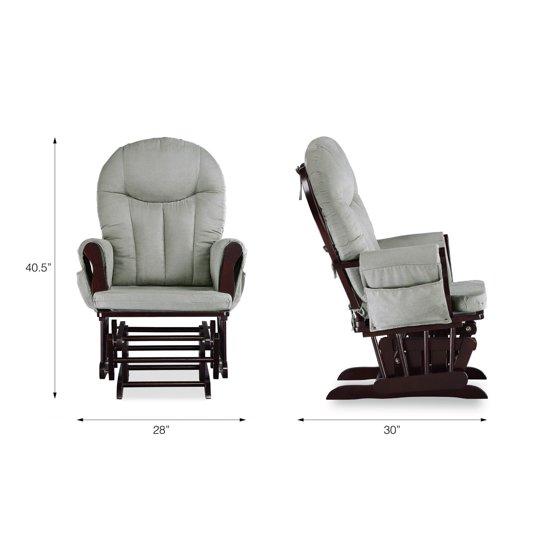 - SAFETY TESTED: Glider - Size: 28"L x 30"W x 40.5"H. Weight limit: 225 lbs. Ottoman - Size: 21"L x 16"W x 14.5"H. Weight limit: 50 lbs. Meets flammability requirements. Does not contain flame retardant chemicals. TSCA Certified for formaldehyde
