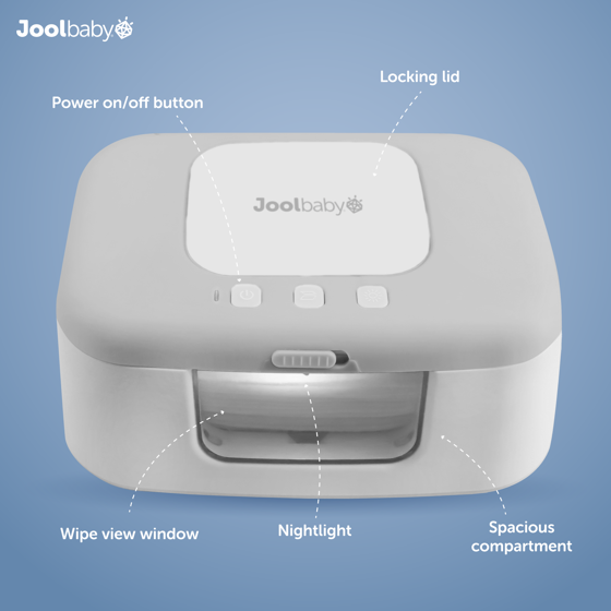 Jool Baby Tiny Bums Baby Wipe Warmer and Dispenser with Nightlight, Gray