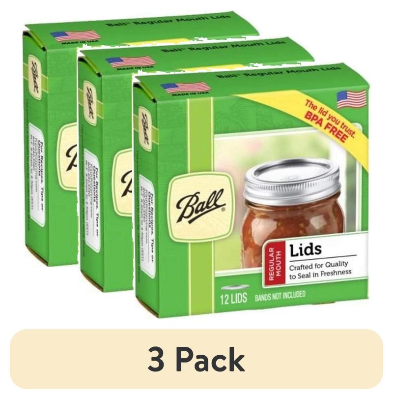 (3 pack) Ball 12-Pack Regular Mouth Canning Jar Lids, One-Piece Mason Jar Lids for Canning and Preserving, Replacement Lids for Ball Regular Mouth Mason Jars