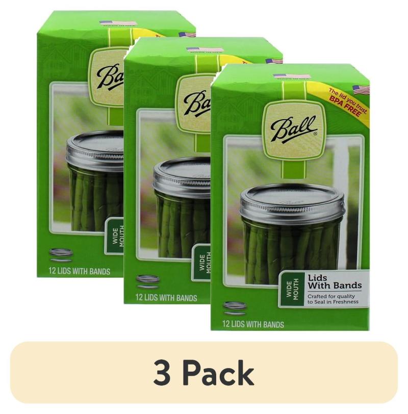 (3 pack) Ball 12-Pack Wide Mouth Canning Jar Lids and Rings, Two-Piece Mason Jar Lids with Bands for Canning and Preserving, Fits Ball Wide Mouth Mason Jars