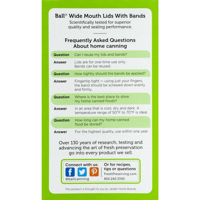- Ball Wide Mouth Lids and Bands for preserving fit all wide mouth glass preserving jars. Seal in freshness and enjoy freshly made foods anytime. Lids are for one-time use only; bands can be reused.