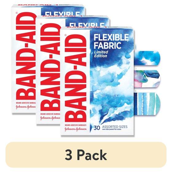 (3 pack) Band-Aid Brand Flexible Fabric Bandages, Water Color, Assorted, 30 Count