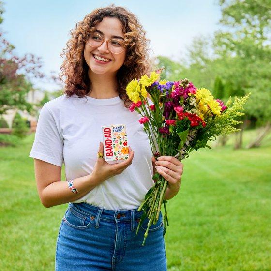 Band-Aid Brand Flexible Fabric Bandages, Wildflower, Assorted, 30 Count