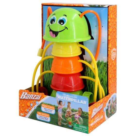 - Banzai Wigglin' Waterpillar Water Sprinkler For Kids includes 8 different water spouts