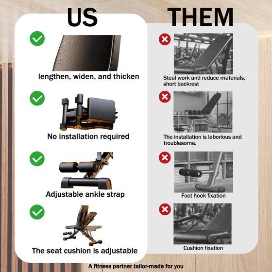 CATGOOD 8 in 1 weight bench is as steady as a mountain, featuring multiple triangular thickened steel supports, with a load capacity of up to 1000 lbs.