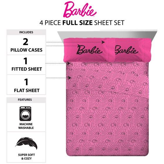 Barbie Kids 4 Piece Pink Sheet Set, Full