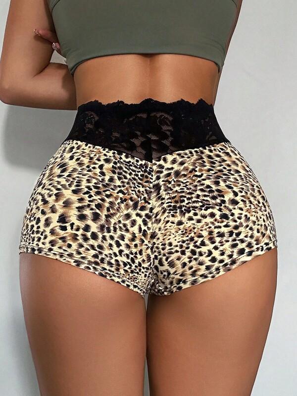 Bare Chapter Women's Leopard Print Lace Patchwork Boyshort Panties ClassicAnimalPrint
