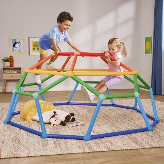 - Designed for indoor or outdoor fun, this climbing dome invites kids to climb on top – or crawl underneath for a cozy hideout or quiet reading nook!