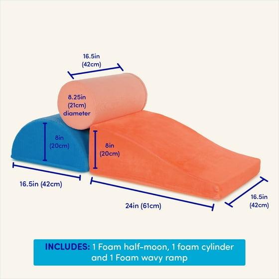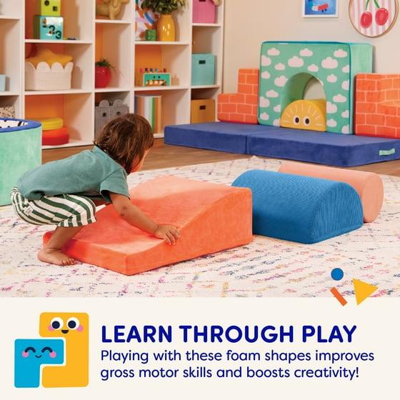 - Roll, stack, and slide with a versatile set of foam play shapes for open-ended fun