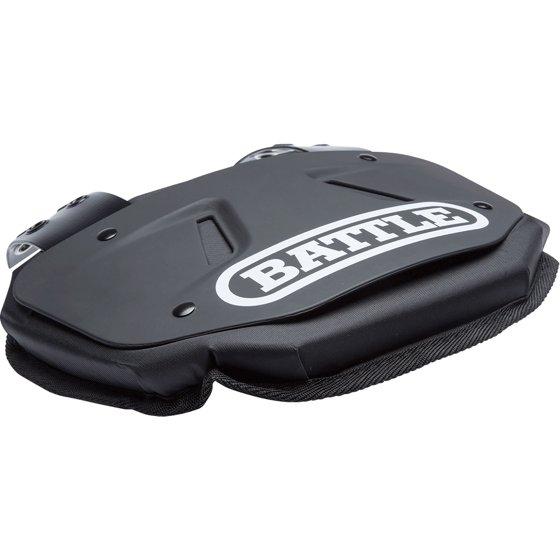 The Battle Sports Protective Football Back Plate is designed to deliver maximum protection and comfort to players of all ages. This plate absorbs impact and provides reliable protection to your back region. Compared to flat football back plates, the unique design of this curved plate disperses impact and is much more comfortable to wear. Strong attachment straps keep the back plate close to your back. Floppy back plates won't protect you from painful blindside hits, so get your game right with this back plate from Battle Sports.
