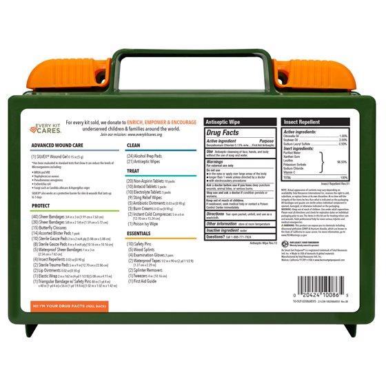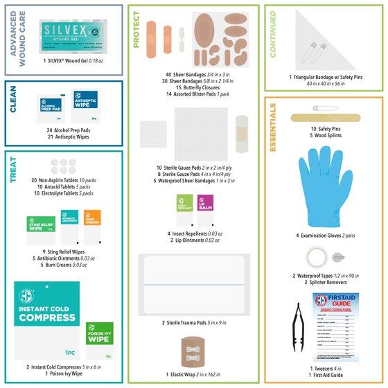 The Happy Explorer 265 pieces Outdoor First Aid Kit by Be Smart Get Prepared offers a comprehensive assortment of first aid supplies for any of your outdoor activities. This first aid kit includes treatments for poison ivy, insect bites and stings, 1st and 2nd degree burns, blisters, minor aches and pains, and more. Packaged in a durable plastic case with an organized interior and EZ-Slide latches. For your next outdoor adventure or family camping trip, make sure you're prepared. Features the essential, Silvex Wound Gel, designed with 24 PPM of Nano Silver Technology. Silvex Wound Gel not only provides a protective barrier to your skin and wounds but also helps promote healing and reduces scarring. From the leading and trusted manufacturer of first aid kits in the USA, Total Resources International.