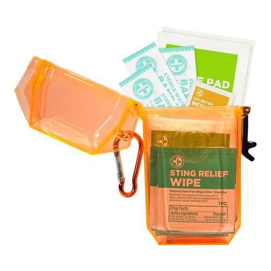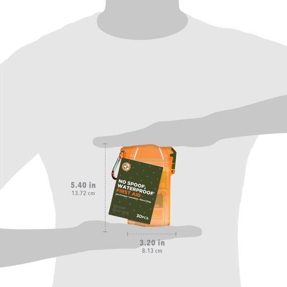 No Spoof, Waterproof Outdoor First Aid Kit by Be Smart Get Prepared, 30 Pieces features waterproof bandages and comes inside tough, waterproof case to ensure your items are always ready to use, when you need it. This first aid kit provides treatments for minor cuts and scrapes, abrasions, and insect bites and stings. Always be prepared, for any adventure, from the leading and trusted manufacturer of first aid kits in the USA, Total Resources International.