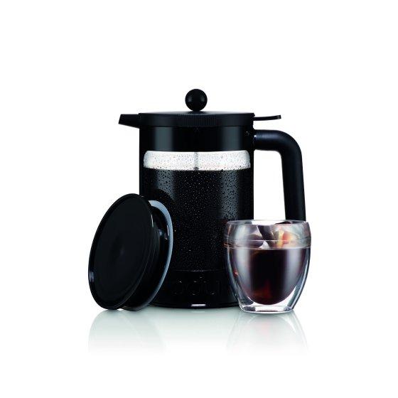 Bean Cold Brew French Press, 51 Oz, Plastic Beaker, Black, With Additional Lid