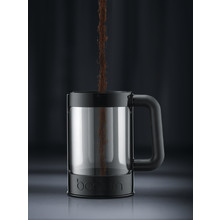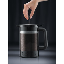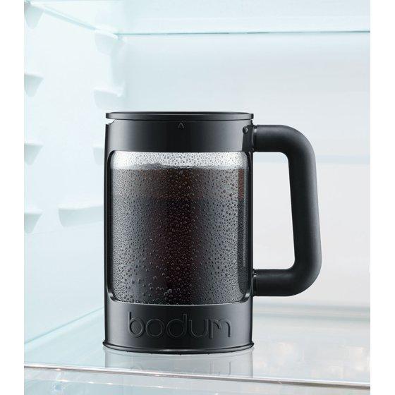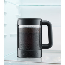 Quality cold brewed coffee comes easy with the BEAN SET Ice coffee maker. Packed with two lids, the first one is to leave in the fridge overnight, and the one with a plunger to press down the coffee grounds in the morning. The 51 oz BEAN Cold Brew Ice Coffee Maker is made from plastic, silicone, and stainless steel and functions the same as a regular French press. Instead of hot water, add filtered water at room temperature and stir. Place the lid on the carafe and let brew for 12 - 24 hours at room temperature or in your refrigerator. Press and enjoy! Manufactured by BODUM and sold NEW!