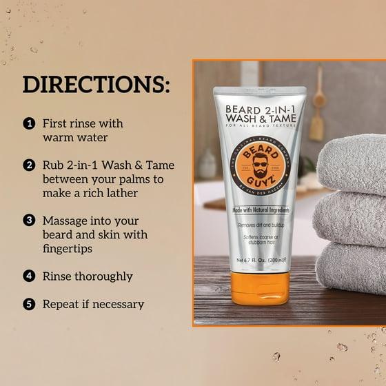Beard Guyz 2-in-1 Wash & Tame Conditioner, Formulated with Natural Ingredients, 6.7 oz