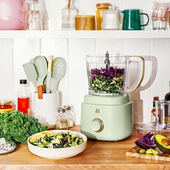 Beautiful 10-Cup Food Processor with Accessories, Sage Green by Drew Barrymore