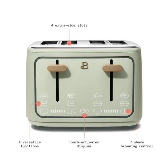 Beautiful 4-Slice Toaster with Touch-Activated Display, Sage Green by Drew Barrymore