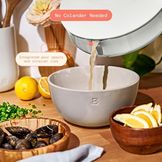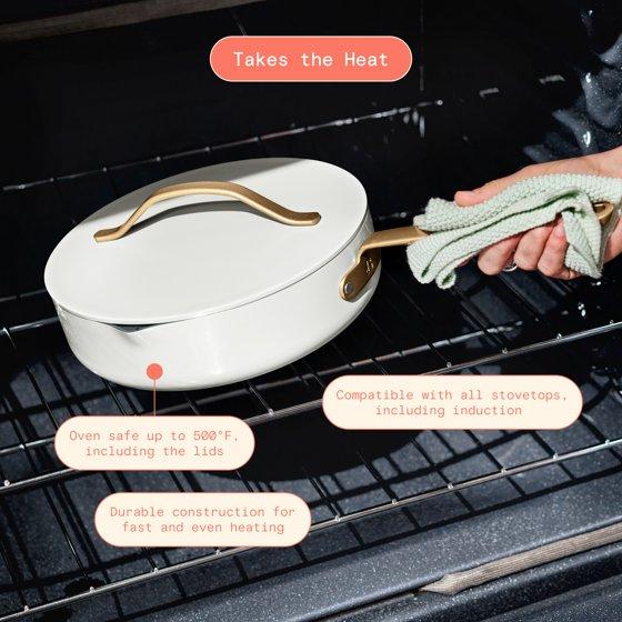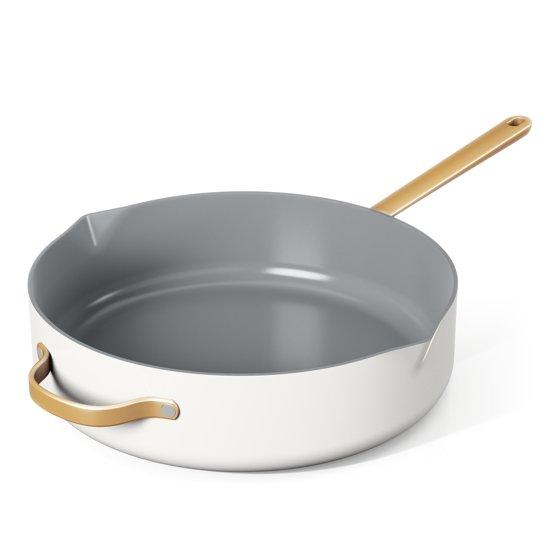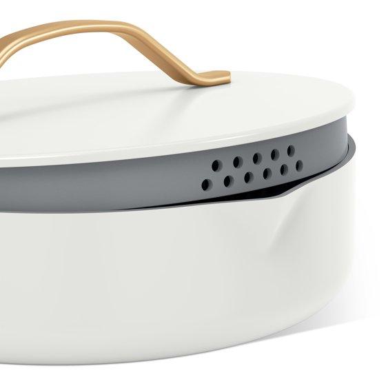 Beautiful 5.5 Quart Ceramic Non-Stick Sauté Pan with Strainer Lid, White Icing by Drew Barrymore