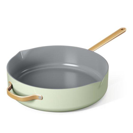 Beautiful 5.5 Quart Ceramic Non-Stick Sauté Pan with Strainer Lid, Sage Green by Drew Barrymore