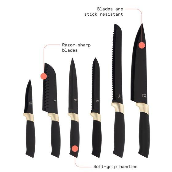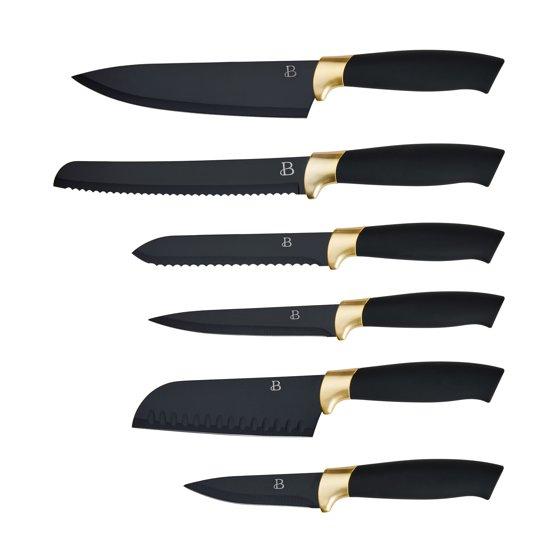 - Beautiful 6 Piece Stainless Steel Knife Set in Black Sesame with Gold Accent By Drew Barrymore: 5300989