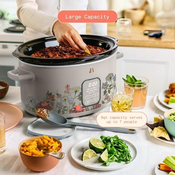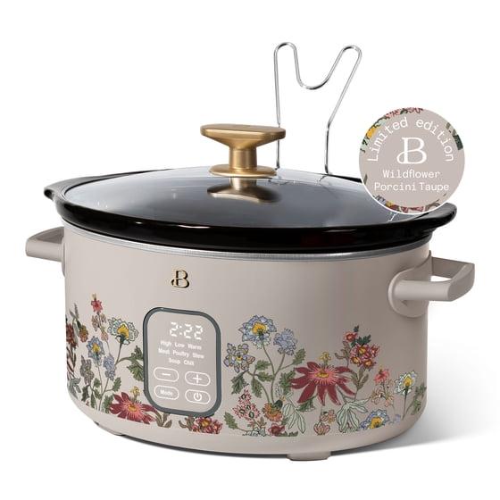 Beautiful 6 Qt Programmable Slow Cooker, Wildflower Porcini Taupe by Drew Barrymore