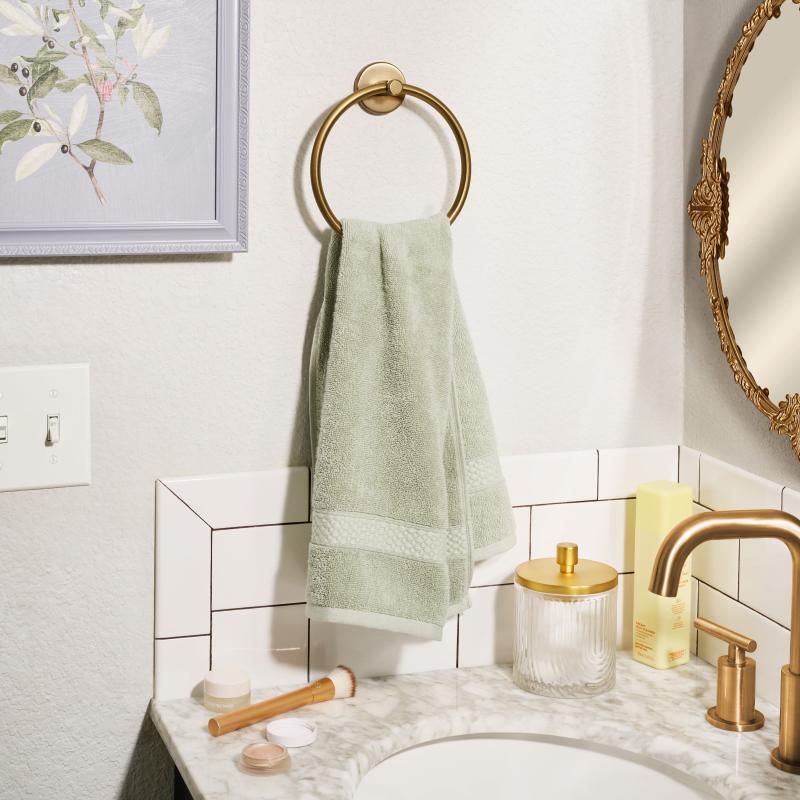 Beautiful by Drew Barrymore Dobby Hand Towel, Soft 100% Cotton, Sage Green