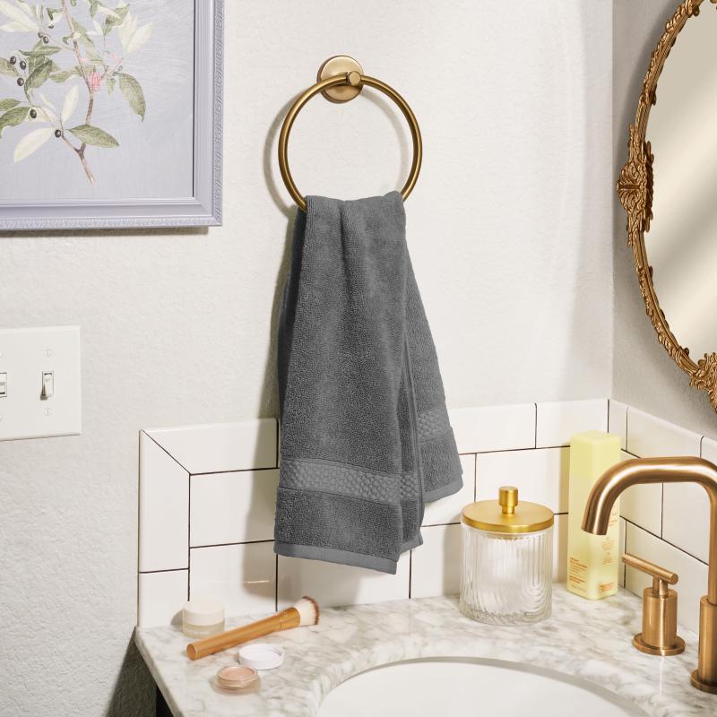 Beautiful by Drew Barrymore Dobby Hand Towel, Soft 100% Cotton, Charcoal Gray