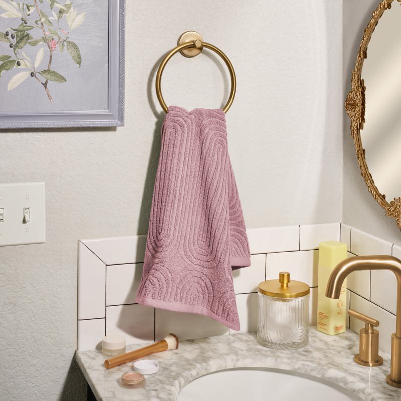 Beautiful by Drew Barrymore Textured Hand Towel, Soft 100% Cotton, Rose Pink