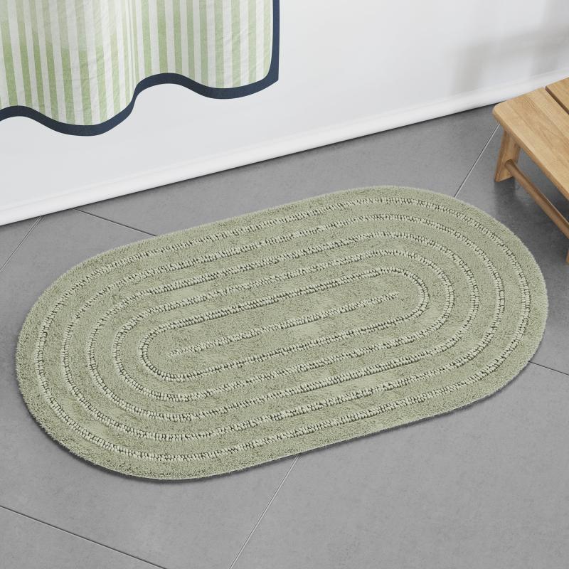 Beautiful Oval Cotton Bath Rug by Drew Barrymore, Sage Green, 20" x 34"